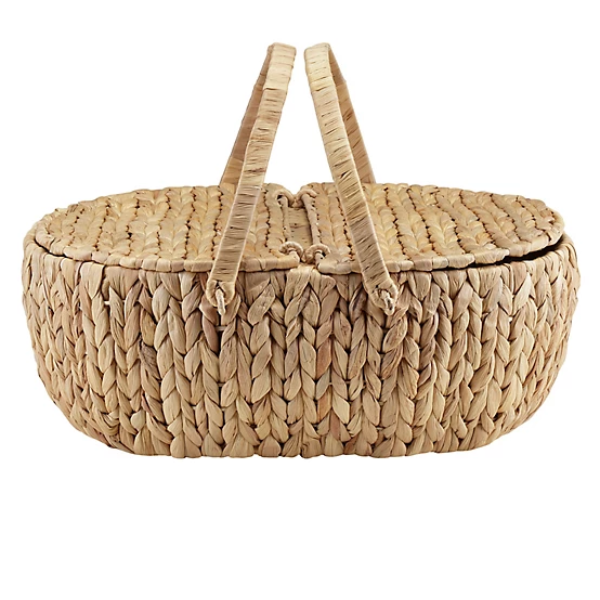 Handwoven Oval Picnic Basket with Lid – Water Hyacinth